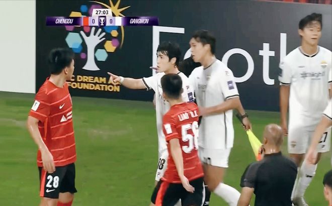 第35分钟,被动的成都蓉城意外取得领先!罗慕洛将球罚到禁区,杨帅头球摆渡,跟上的周定洋凌空抽射破门,1:0!江原FC随即进一步在进攻端发起冲击,最终半场比赛结束,成都蓉城利用一次角球的机会,暂时领先于对手。