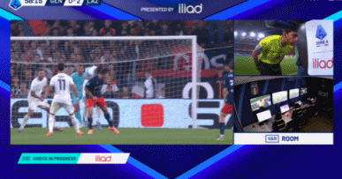 第57分钟,罗马尼奥利禁区手球被判点球,裁判观看VAR取消点球